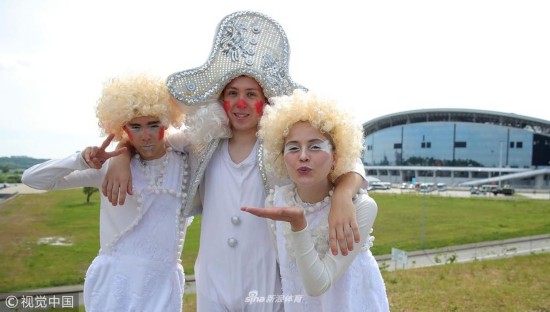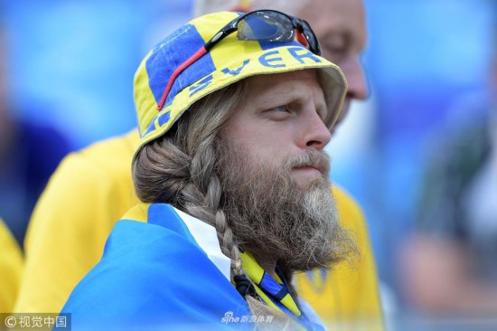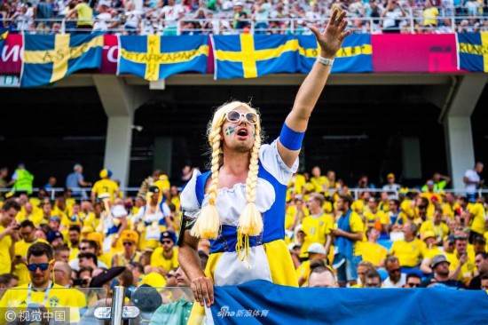 2018年6月18日,俄罗斯下诺夫哥罗德,2018俄罗斯世界杯小组赛F组,瑞典Vs韩国,球迷观战助威。