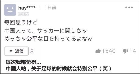 这句日本网友的鼓励,对于中国球迷而言可以说是扎透心了。