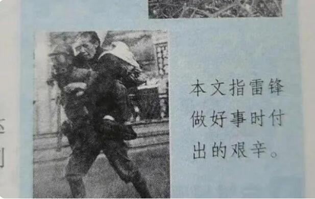 日前,有网友反映陕西人民教育出版社出版的《举一反三同步巧讲精练小学语文二年级下册》存在严重的插图错误:在词义巧理解栏目中,为“雷锋做好事时付出的艰辛”配的图片,疑似为穿着日军军装的人背着老太太的照片。