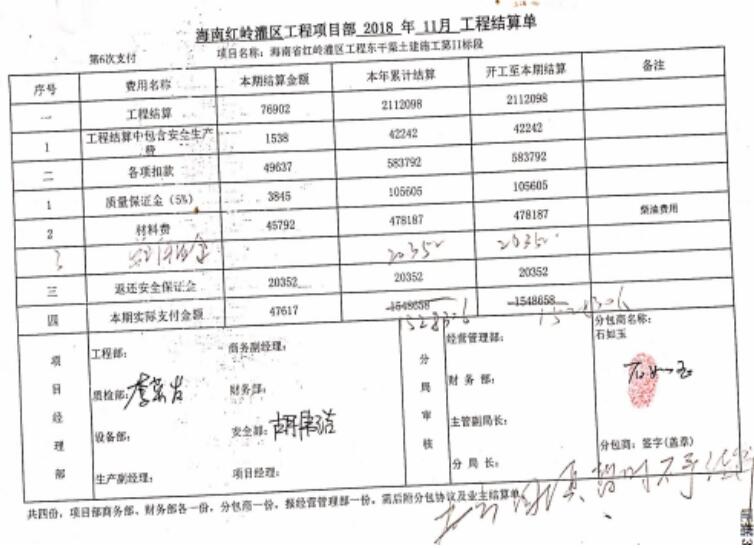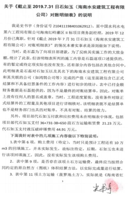 法学专家:石如玉、海南水安公司索要中水六局的施工款项没有合法依据 文/李海波 2018年1月10日,海口居民石如玉与中国水利水电第六工程局有限公司(中水六局)签订《海南省红岭灌区工程东干渠土建施工第II标自卸汽车租赁合同》。约定将5辆运输能力20-22m3自卸汽车出租给中水六局。中水六局现场代表为生产经理高伟,并约定车次数量及每车次运输距离需中水六局现场代表高伟签字确认生效。合同履行完毕后,双方于同年7月1日最后结算自卸汽车租赁费。 1月22日,中水六局与石如玉签订《海南省红岭灌区东干渠土建施工第II标段隧洞暗涵段土石方开挖回填工程劳务分包合同》,约定将该标段土石方开挖回填工程劳务分包给石如玉,承包范围为2#隧洞暗涵段土石方开挖回填;合同价款暂定总价金额2001342元。并约定中水六局派驻代表为崔国印,其权限包括审批本合同工程进度、文件均需中水六局派驻现场代表签名后并加盖签证、预结算。 3月11日, 石如玉与中水六局签订《混凝土泵车租赁合同》,约定中水六局租赁石如玉混凝土泵车用于施工;并约定中水六局现场代表为书记丁文。合同履行完毕后,经石如玉与项目部进行了结算。 12月29日,石如玉为董事长的水安公司与中水六局签订《海南红岭灌区东干II标项目桩号36+731-38+650段石方运输合同》,约定中水六局将位于海南省定安县的红岭灌区工程东干渠土建施工第II标段工程的石方交给水安公司自卸汽车运输至指定区域并按要求堆放;水安公司提供挖掘机(或液压破碎锤)、自卸汽车;该合同没有约定中水六局现场代表。截止2019年6月29日,合同项下运输工程履行完毕。期间双方对变更后050号《石方运输合同》进行结算,截止4月自卸汽车运输费(沟槽石方开挖)工程量为84310.88m3,自卸汽车运输费(临时道路)工程量为2889m3,结算金额为3923955元。沟槽石方开挖工程量为60000m3,同时备注“因施工尚未全部完工,先暂定60000m3,最终以实际方量结算”。 2019年1月9日,水安公司与中水六局签订《海南红岭灌区东干II标项目桩号53+472-54+261 段土石方运输合同》。 约定由水安公司为中水六局位于海南省定安县的红岭灌区工程东干渠土建施工第II标段工程进行取土场装车、自卸汽车运输至指定工作面,暂定合同总价1085600元。该合同也没有约定中水六局现场代表。 石如玉的父亲石磊雇用被告中水六局现场施工人员刁占华在现场管理机械、设备,运输渣土、土方、石头的汽车数量,刁占华用“女神故里”微信号在工程工作群进行工程日报。每天报的出渣量是是大致的预估,按一车20方计量的。截止2019年6月29日,刁占华在工作群上报出渣量共计165479m3。 石如玉、水安公司与中水六局在对案涉工程进行结算时,均是制作正式书面机械租赁费结算单、机械租赁使用时长签证单、工程结算单、完成工程量签证单,由石如玉签名、水安公司盖章,中水六局的项目经理、生产经理崔国印、蔡洪亮、蔺新龙、丁文胜,以及中水六局的工程部、财务部、安全部、质检部、设备部、商务部等人员签字,最后加盖中水六局的项目章,双方才完成结算。 正式的工程结算单,有双方人员签字 微信中的《对账明细表》多处有暂估字样 2019年8月24日,商务副经理史书宇通过微信向石磊微信发送了《对账明细表》,该《对账明细表》上没有石如玉签名和水安公司盖章,没有中水六局的项目经理、生产经理崔国印、蔡洪亮、蔺新龙、丁文胜以及中水六局的工程部、财务部、安全部、质检部、设备部、商务部等人员签字,也没加盖中水六局的项目章。 2020年3月26日,史书宇出具《关于<截止至 2019.7.31日石如玉(海南水安建筑工程有限公司)对账明细表>的说明》,阐明当时是石磊为了向项目部请款,为反映其实施工作的大致金额,统计了此表,表中已付金额财务数据是石磊提供的,因为不是最终的对账结算单,该明细表既不是结算单也不是财务部门出具的对账单,不具有对账、结算的效力。 截止2020年1月19日,中水六局向石如玉、水安公司款合计人民币11744300元。 中水六局认为已经支付完工程款,而石如玉、水安公司认为中水六局要按照史书宇微信发送的《对账明细表》结算。2021年5月15日,石如玉和水安公司向法院起诉中水六局,要求支付海南省红岭灌区东干渠施工款项人民币7969935元及仲裁费63383元、保全费5000元、保全保险费13426.09元。 2021年11月1日,定安县人民法院作出民事判决:一、被告中国水利水电第六工程局有限公司在本判决生效之日起十五日内向原告石如玉、海南水安建筑工程有限公司支付工程施工各种费用合计人民币2451089元;二、被告中国水利水电第六工程局有限公司在本判决生效之日起十五日内向原告石如玉、海南水安建筑工程有限公司退还质保金105600元;三、驳回原告石如玉、海南水安建筑工程有限公司的其他诉讼请求。 判决后,石如玉、水安公司及中水六局均提起了上诉。 近日来自中国人民大学、中国社会科学院、北京大学、中国政法大学、首都经贸大学的5位知名法学教授对此案进行了论证。法学专家一致认为:石如玉、水安公司的请求没有合法依据。 一是史书宇通过微信发送的《对账明细表》并非职务行为,该《对账明细表》不具有对账结算效力,不能作为涉案工程结算的依据。在中水六局与石如玉、水安公司签订的案涉相关合同中,约定了中水