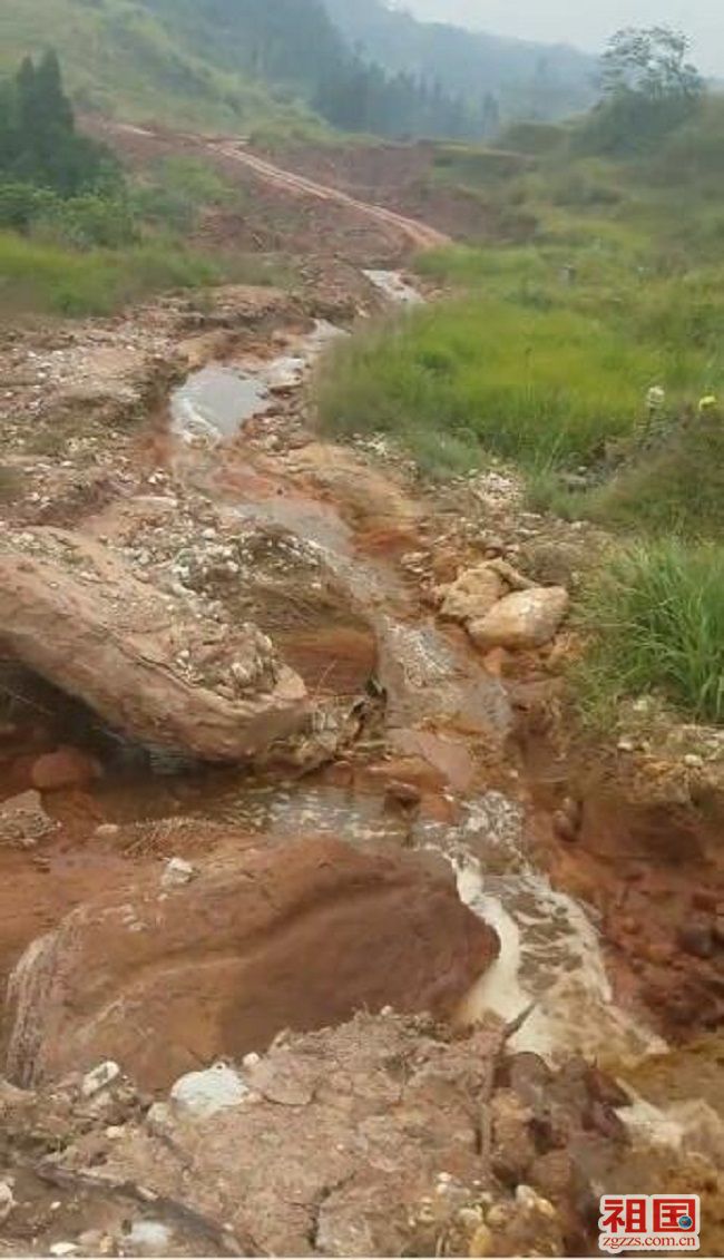 为了解事情真相,记者于2018年10月17日来到重庆潼南区。在举报人的带领下,我们来到位于潼南化工园北区附件的大溪大桥,从桥上向下看,能清楚的看到一条红褐色污水的河流在大溪谷中由北向南通过大溪桥,向涪江方向流去。为弄清楚此污水源头,记者一行下入大溪谷底。在谷底污水的河道边,举报人指着河道的污水说,你们看,这河里的沉淀物好厚,肯定有好多年在排污水,不知道这些沉淀物是啥有毒物质,污水都是褐红色的,河道两边的草木都死了,好臭啊,太刺鼻了。我们顺着河道走了约1公里,便发现工业园区所在的陡坡方向,有一大股污水从坡上向下倾泻而出,流入谷底河道中。坡上急速的污水冲击着石土,溅起的污水四射,场面甚是壮观。我们艰难的爬到污水排泄口,只见管口有半米粗,排污的管道被埋入土中。被埋的排污口距工业园区北区有600米左右。离排污源最近的是重庆潼南民丰化工有限公司。采集完污水样品后,记者便向有关职能部门了解此事情况。