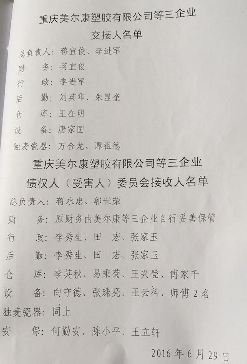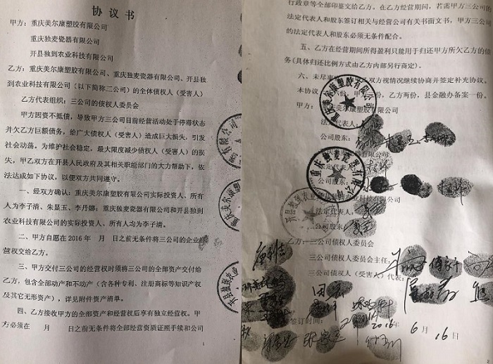 2016年6月16日,在开县有关部门负责人的指导下,李子清所有的三个公司与债权人签订协议,将李子清所有的三个公司资产交给债权人委员会管理 。