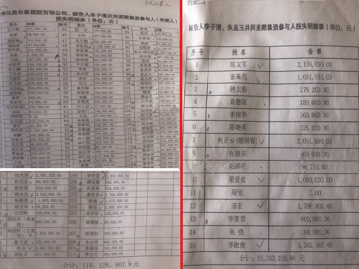 2019年2月25日,开州区法院判决,责令李子清夫妇和美尔康公司退赔集资人和受害人损失,并附表有确认的集资参与人和受害人名单。