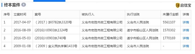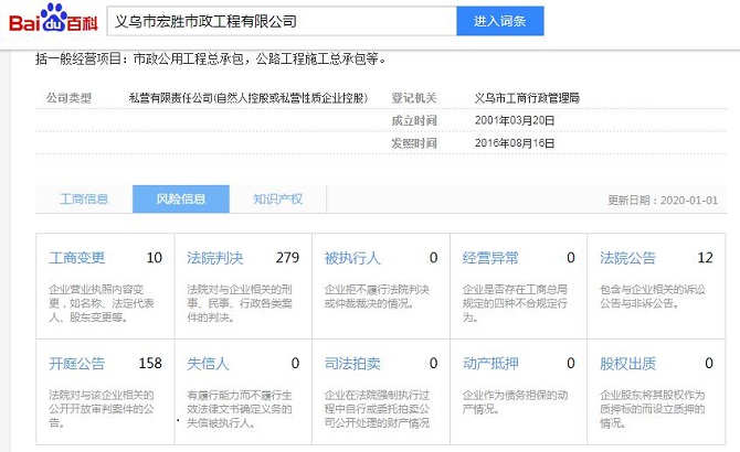 百度上的义乌市宏胜市政工程有限公司风险信息