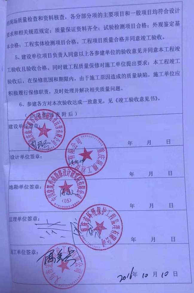 “渝北双汇桥片区汇流积水整治工程”于2016年10月10日竣工验收合格,所有手续都是曾胜和合伙人出面协调处理完成