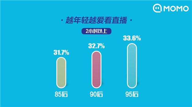 1月8日,移动社交平台陌陌发布了《2019主播职业报告》,通过对近万名移动网络用户,主播的抽样调查发现:33.6%的95后每天看直播超2小时;近8成用户会为直播付费,24.1%的职业主播月收入过万; 11.8%的95后主播为父母买房。