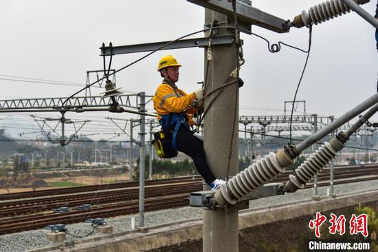 ![]() 1.7米宽的作业平台能容纳多人同时作业。 王以照 摄 ![]() 50余名职工分成若干的小组,同时对多个设备进行维护,小组单次作业仅需不足15分钟。 王以照 摄 ![]() 搭载可举升平台的检修车能大大提升工作效率。 王以照 摄 ![]() 工人正在对顶部的接触网进行检修。 王以照 摄 ![]() 挂满安全绳,正在对接触网进行检修的铁路职工。 王以照 摄 ![]() 黄色的检修列车正在对铁路接触网进行检修。 王以照 摄 ![]() 检修职工等待检修列到来。 王以照 摄 ![]() 进行施工时,工人必须保证两个安全扣同时系好,以保证安全。 王以照 摄 ![]() 铁路职工对接触网臂进行检修。 王以照 摄 ![]() 铁路职工使用扳手对螺帽进行紧固。 王以照 摄 1月9日春运前一日,中国铁路南宁局柳州供电段的一列218米长的检修专列,载着50余名铁路职工驶上桂林市的铁路枢纽,对给火车供电的接触网进行检修,确保春运安全。该车配备175米长的作业平台,能一边开进一边检修,像“贪吃蛇”一般吞噬隐患,检修效率比一般轨道车提升5倍,且配备休息车、炊事车和餐车,如可移动的小镇一般,能满足野外作业需求,减少工人劳累。据了解,2020年春运较往年提前近半个月,铁路供电部门抓住一切天窗期进行检修,确保春运期间设备正常运行。 |