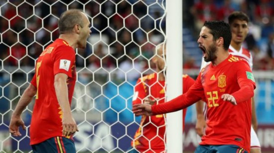 西班牙将战摩洛哥 北京时间6月26日02:00(加里宁格勒当地时间25日21:00),2018年世界杯B组末轮一场比赛在加里宁格勒球场展开角逐,西班牙对阵摩洛哥。 西班牙在1961年世界杯预选赛附加赛中双杀摩洛哥。西班牙近22场比赛保持不败,本场比赛保持不败将确保小组出线,蒂亚戈轮换卢卡斯出场。摩洛哥近15场世界杯赛事仅胜2场,但2场比赛均在小组赛末轮取胜,赛斯轮换贝纳蒂亚出场。 提前出局的摩洛哥并未消极放弃比赛。N-阿姆拉巴特对拉莫斯犯规险些引发冲突。随后卡瓦哈尔回传失误,皮克双腿飞铲布塔伊布又引来摩洛哥球员的激烈抗议。摩洛哥第14分钟取得领先,拉莫斯和伊涅斯塔后场让球失误,布塔伊布单刀突入禁区内14码处推射,皮球从德赫亚双腿间穿过入网。这是摩洛哥自1998年以来的首粒世界杯进球。