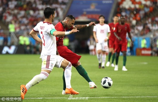 北京时间6月26日,世界杯B组小组赛,上半场比赛,夸雷斯马在右侧禁区外用一脚外脚背弧线攻破了伊朗的球门。