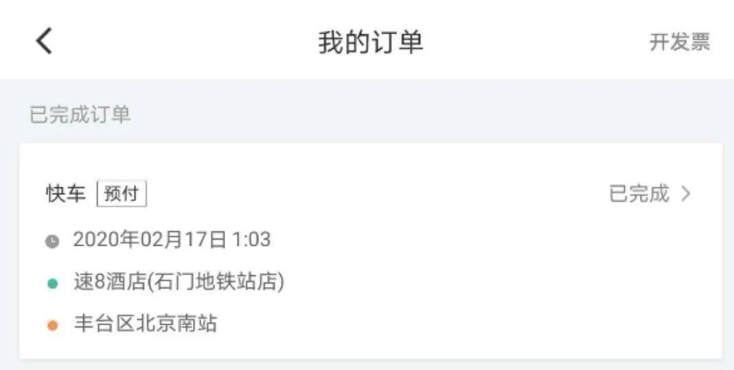 去北京南站的打车订单记录。
