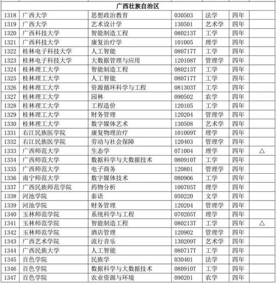日前,教育部发布了关于2019年度普通高等学校本科专业备案和审批结果的通知(教高函〔2020〕2号)。根据公布结果,2019年度各高校新增备案本科专业1672个,新增审批本科专业181个,调整学位授予门类或修业年限专业47个,撤销本科专业367个。 ![]() 通过对教育部公布的名单进行整理发现,广西新增备案本科专业57个,新增审批本科专业7个、撤销本科专业13个。 2019年度普通高等学校本科专业备案和审批结果 广西新增备案本科专业名单 ![]() ![]() 广西新增审批本科专业名单 ![]() 广西撤销本科专业名单 ![]() 来源:教育部网站 |