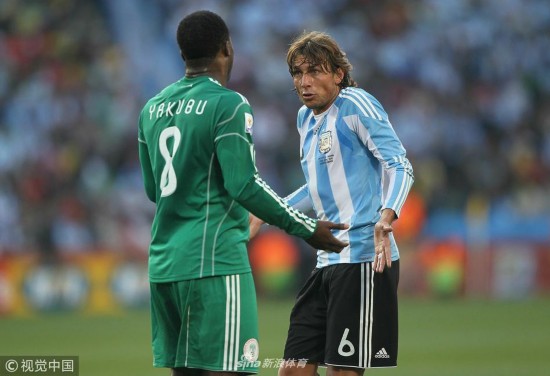 2010年6月12日,南非约翰内斯堡,2010世界杯B组小组赛,阿根廷Vs尼日利亚。海因策与雅库布。