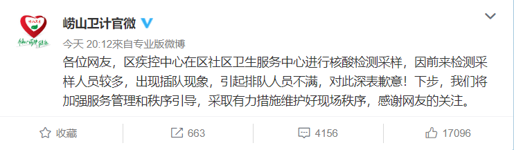 今日,有网友称青岛某社区市民排队核酸检测时,出现3名外国人插队情况,从而引发冲突。对此,4月1日晚,青岛市崂山区卫生局官方微博回应,各位网友,区疾控中心在区社区卫生服务中心进行核酸检测采样,因前来检测采样人员较多,出现插队现象,引起排队人员不满,对此深表歉意!下步,我们将加强服务管理和秩序引导,采取有力措施维护好现场秩序,感谢网友的关注。
