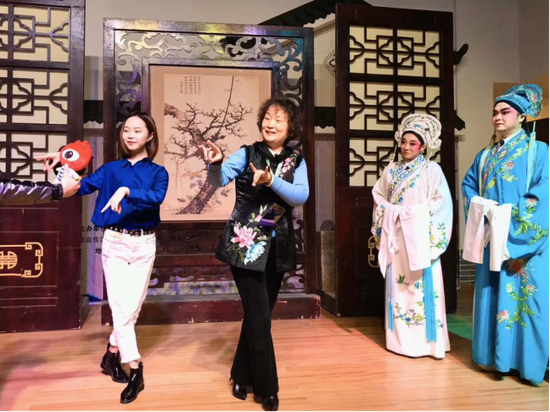美食品尝之后,主播还带网友们去到了梧州粤剧团,不仅听到了粤剧,主播还专门跟梧州粤剧代表性传承人陈静学起了表演技巧。