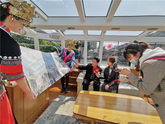 第二条路线泛舟两江四湖,感悟城市与山水相结合的魅力,与漓江画派大师畅谈桂林山水特色和文化,还品尝了当地特色美食桂林米粉,带网友全方位感受了一把桂林魅力。