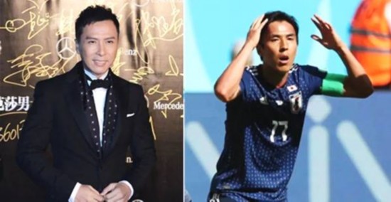 世界杯小组赛,日本vs哥伦比亚的时候,万万没想到甄子丹作为日本队队长帮日本队踢球去了,戏内甄子丹饰演的民族英雄叶问,一个人打十个日本人。日本队长长谷部诚在足球运动中也是踢十个人,历史总是惊人的相似,当然啦,不得不说他们的脸也是惊人的相似。