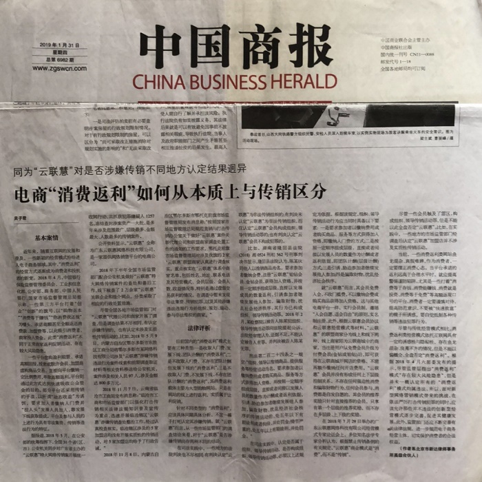 中国经济时报、民主与法制时报、财经杂志、中国商报、消费日报、央视频道均以大篇幅文章或视频节目分析了云联惠的直销与返利的合法性、消费返利与传销的本质区别,提出对待商业模式创新要宽容,要为企业创新营造更优的营商环境。