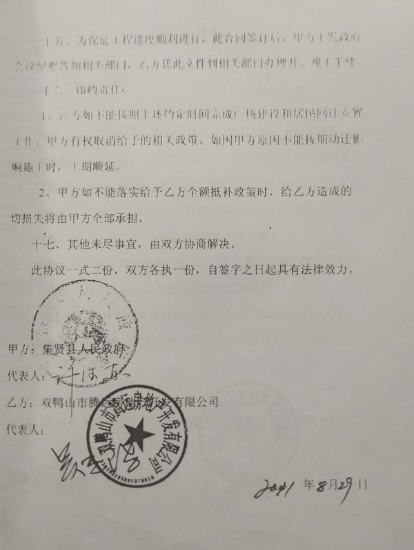 求 助 信 中央媒体: 我是黑龙江省双鸭山市腾远房地产开发有限公司(简称腾远公司)的法定代表人吴光浩。我实名举报黑龙江省双鸭山市集贤县人民政府滥用职权,乱作为、不作为、欺上瞒下的违法乱纪事实。由于集贤县政府的违法行为,致使腾远公司债台高筑,颇临破产的边源。举报事实如下: 一、2011年8月29日,集贤县政府与腾远公司就站前广场项目改造工程签订了合同书及补充合同书。 二、腾远公司按合同书约定开始办理站前小区建设相关手续时,发现集贤县政府福利屯站前广场及西侧棚户区改造工程涉及的18.5亩铁路用地使用权非集贤县政府所有。在 土地权属不清的情况下,集贤县政府竟以欺瞒的方式将腾远 公司招商中标引进,致使腾远公司不能按预期时间办理不动产权证书、建设用地规划许可证、建设工程规划许可证、建筑工程施工许可证、商品房预售许可证。 三、集贤县政府在腾远公司不具备动工开发所必需的基本条件下,强行违法乱纪要求腾远公司进行开发施工。 四、腾远公司因集贤县政府的欺瞒行为导致上述五证不能如期办理(足足推迟了6年时间),腾远公司不能如期预售房屋,致使腾远公司工程资金链断裂。无奈的情况下,腾远公司只能高利息贷款。 由于集贤县政府的违约行为,给腾远公司造成直接经济损失达6亿余元。 五、集贤县政府与腾远公司合同约定,为弥补腾远公司亏损,并获合理利润,集贤县政府为腾远公司提供建设商品房用地10万平方米,但集贤县政府只给腾远公司71314平方米土地,余下的28686平方米土地在腾远公司不知情的情况下,转卖给了他人。 六、集贤县政府的欺上瞒下、胡作为、乱作为、不作为的及其不负责的行径,使腾远公司损失惨重,举步维艰,难以度日,几近垮掉。 在此情况下,腾远公司法定代表人吴光浩多次、多年找到了历届县长,反映腾远公司的情况(2011年-2016年许德东任县长,2016至2018年李凯任县长,2019年至今郭伟任县长)。而集贤县政府一拖再拖,不予解决。由于集贤县政府不作为,腾远公司在2013年就损失1500万元,到2020年损失达6亿多元。每届县长都是给付一千多万元应付了事。三届县长共给付五千余万元。从签订合同到现在已经九年的时间了,腾远公司找集贤县政府,可政府的门都进不去。集贤县政府给腾远公司造成的损失,集贤县政府视而不见。 由于集贤县政府不作为,给腾远公司造成严重损失。腾远公司的法律代表人吴光浩急火攻心,焦虑成疾,于2015年在与集贤县政府交涉的过程中,突发脑出血,治疗了五年,才挽回了性命(现在仍然是半身不遂还在恢复中)。由于吴光浩的病,是在公司不景气的时候发生的,因治病到处借债,集贤县政府给腾远公司和吴光浩造成的山穷水尽,走投无路。 综上,本人吴光浩恳请中央媒体来人调查采访,对腾远公司所反映的问题给予曝光,以上如有不实,本人吴光浩愿承担一切法律责任。 求助人:吴光浩 双鸭山市腾远房地产开发有限公司 电话:13136661215 二0二0年九月十四日 集贤县站前广场项目改造工程启动剪彩仪式现场 |