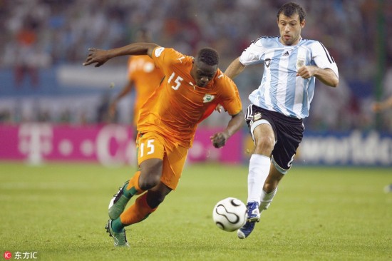 当地时间2018年6月30日,俄罗斯喀山,2018世界杯1/8决赛,法国4-3阿根廷。赛后,阿根廷球员马斯切拉诺宣布退出国家队。2006-2018,马斯切拉诺4次参加世界杯,出战20场;国家队层面,更是创纪录的为国征战147场。“是时候说再见了。从现在起,我是一名阿根廷球迷了。”,愿未来的日子,小马哥一切都好。图为阿根廷队在世界杯首场小组赛中2比1战胜科特迪瓦队,马斯切拉诺首发出场,完成了世界杯首秀。