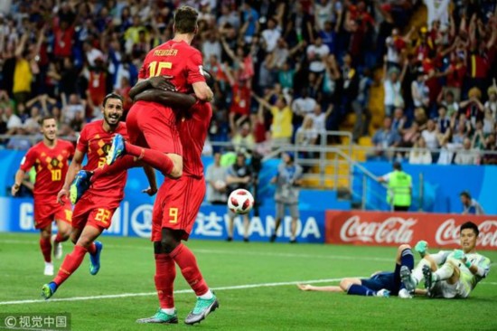 费莱尼泰山压顶 比赛的空气瞬间凝固起来,此时剩下的时间已经不多,任何一方进球都有可能直接杀死比赛。查德利和卢卡库连续两次近距离射门被川岛永嗣扑出,让比利时错过一次绝佳机会。比赛进入伤停补时,比分依然是2-2。而决定性的一刻终于在最后时刻到来,本田圭佑的任意球远射被扑出,随后日本的角球进攻被库尔图瓦直接没收,这时候比利时门神做出了关键的举动,他立刻开出手抛球发动反击,比利时快速将球传到日本半场,德布劳内和默尼耶连续传球,将球送入日本禁区,这时候卢卡库在点球点附近巧妙一漏,恰好到位的查德利在小禁区前推射破门,完成绝杀!在这一刻,胜利女神终于向比利时露出了微笑,最终的比分定格在了比利时3-2日本,双方在下半场狂进5球,而欧洲红魔在两球落后的情况下上演了神奇的大逆转,将蓝色武士送出了世界杯的争夺。
